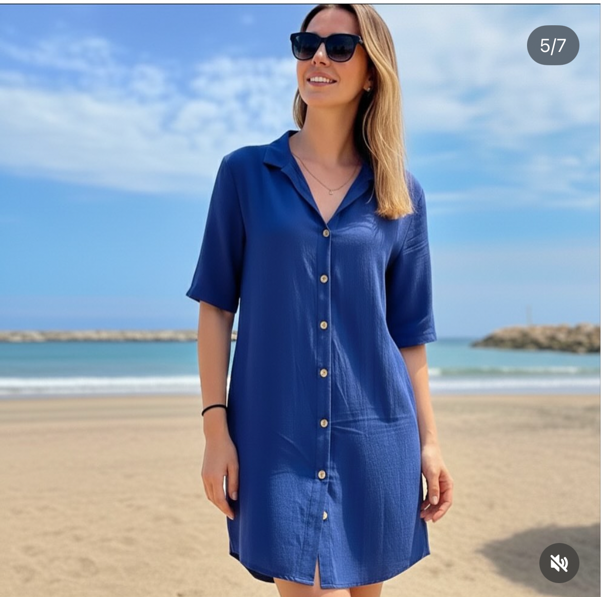 Lindo vestido camisero de Lino, súper fresco y cómodo! Ideal para usar de diario o como salida de playa! Prueba usándolo con un cinturón!